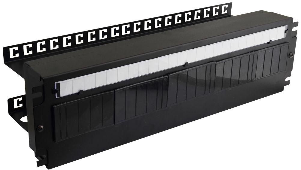 Das ARADIN1 ist eine Spannungsverteilertafel von elektrischen Sicherungen des Typ "S" für 19"-Schränke. ARADIN1 hat eine Länge von 24x1S. Sechs M6-Schrauben mit Käfigmuttern zur Montage sind enthalten. Die Tafel verfügt zudem über ein Beschriftungsfeld von 420x20 mm.