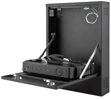 Das Gehäuse AWO528W schützt den Rekorder vor unbefugtem Zugriff oder Diebstahl. Das Gehäuse besteht aus Stahl mit einer Dicke von 1 mm. Es ist mit einem Schloss und zwei Sabotageschaltern für Öffnung und Abriss ausgestattet. Aufgrund der vertikalen Installation und geringen Tiefe, ist es ideal für Orte, an denen tiefere Gehäuse oder 19" Schränke nicht eingesetzt werden können. Das AWO528W erfüllt die Anforderungen der Zugriffssicherung für Videoüberwachungssysteme nach DSGVO.