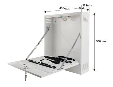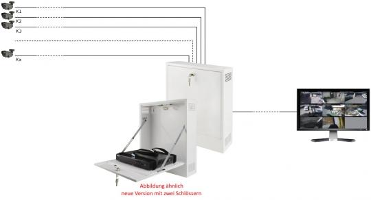 Das Gehäuse AWO529W schützt den Rekorder vor unbefugtem Zugriff oder Diebstahl. Das Gehäuse besteht aus Stahl mit einer Dicke von 1 mm. Es ist mit zwei Schlössern (unterschiedliche Codierung) und zwei Sabotageschaltern für Öffnung und Abriss ausgestattet. Aufgrund der vertikalen Installation und geringen Tiefe, ist es ideal für Orte, an denen tiefere Gehäuse oder 19" Schränke nicht eingesetzt werden können. Das AWO529W erfüllt die Anforderungen der Zugriffssicherung für Videoüberwachungssysteme nach DSGVO.