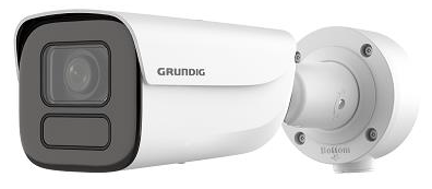 Die GRUNDIG GD-CI-AT4634T ist ein 4 Megapixel IP-Bulletkamera (IP). Das schwarz/weiße Gehäuse ist wetter- und vandalismusgeschützt (IP67/IK10+). Der 1/1,8" CMOS Sensor liefert Bilder in einer Auflösung von 2588 x 1520 Pixel mit bis zu 25bps. Ausgestattet mit einem 2,7-13,5 mm Motorzoom-Objektiv, IR-LEDS (Reichweite bis 60m), WDR (Wide Dynamic Range) sowie Videoanalysefunktionen lässt diese Kamera kaum Wünsche offen. Einstellungen sind über den eingebauten Webserver möglich. Die integrierte Zählfunktion kann Objekte in zwei Richtungen (Eingang/Ausgang) zählen und das Ergebnis im Bild der Kamera anzeigen. Die Spannungsversorgung kann wahlweise über 12 V DC , 24 V AC oder PoE+ erfolgen.