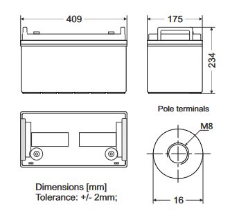 Die Akkus werden in AGM-Technologie (Absorbent Glass Mat) hergestellt; das Elektrolyt wird in der Glasmatte gehalten. Die verwendete Technologie ermöglicht die Installation von Akkumulatoren an Orten mit natürlicher (Schwerkraft-)Belüftung und minimiert den Wartungsaufwand.