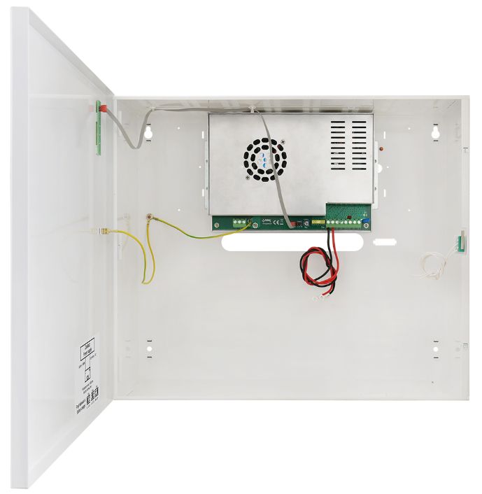 Die Konstruktion des Netzteils basiert auf dem Modul eines Impuls-Netzteils, mit hoher Energie-Leistung, in einem Metallgehäuse (Farbe RAL 9003) und mit Platz für einen Akku 7-65Ah/12V. Das HPSB-12V20A-E wird fertig vorinstalliert in einem sabotagegeschützten Metallgehäuse geliefert.