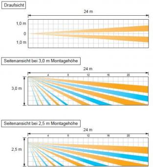 Der HX-80N AM ist ein Passiv-Infrarot Bewegungsmelder für die Außenanwendung und setzt neue Maßstäbe in der Freigeländeüberwachung. Der Melder bietet eine hohe Erfassungssicherheit bei gleichzeitig hohem Schutz vor Falschalarm. Er verfügt über zwei neu entwickelte Pyroelemente, welche eine Verknüpfung der 20 Erfassungszonen darstellen. Die große Reichweite von 24 Metern bei 2 Metern Breite sind ideal zur Zaunüberwachung. Die Pyroelemente sind mit einer intelligenten „UND“-Kombination ausgestattet, welche ständig den oberen und den unteren Bereich der einzelnen Zonen überwachen. Die HX-80N Serie verhindert somit wirksam mögliche Falschalarme, die zum Beispiel durch kleine Tiere verursacht werden. Bedingt durch dieses Funktionsprinzip ist eine exakte Installation und Ausrichtung erforderlich.