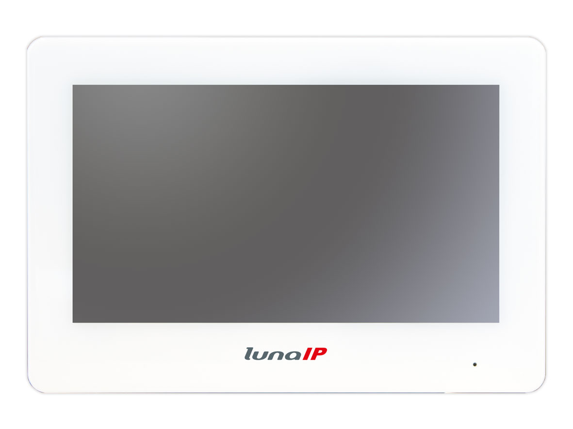 LUNA IS5702 ist ein 7" Touchscreendisplay für die komfortable Bedienung der LUNA Video-Türsprechanlagen. Bild, Ton und Stromversorgung für die Türstationsgeräte können wahlweise über ein Netzwerkkabel oder per Zweidraht (PLC-Bus) übertragen werden. Vorhandener Klingeldraht kann verwendet werden, so dass eine aufwändige Neuverkabelung meist entfällt. Der Monitor verfügt über Mikrofon und Lautsprecher für Gespräche mit einem weiteren Display und der Außenstation. An das Display kann zudem ein Klingeltaster für einen Etagenruf angeschlossen werden. Auch der Anschluss eines zusätzlichen Klingelgongs ist möglich. Darüber hinaus können Kameralivebilder aus der Videoüberwachung direkt am Display angesehen werden. Eine Halterung für die Wandmontage ist Teil des Lieferumfangs.