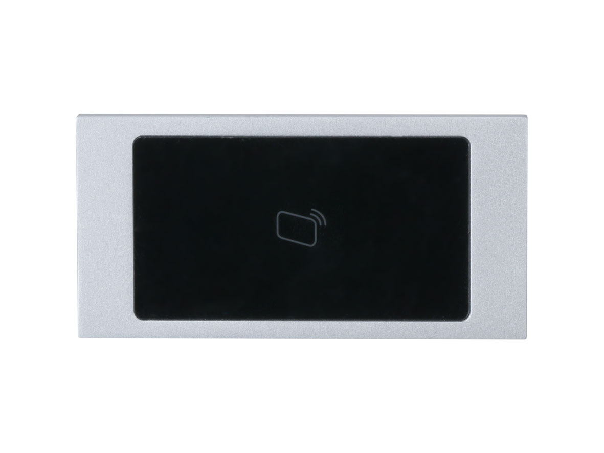 Das LUNA KL5700 ist ein Türsprechanlagenmodul für den Außenbereich (IP54) mit Kartenleser (RFID) in einer Alu-Frontplatte und ergänzt das Kamera-Hauptmodul LUNA TS5710. Eine separate Spannungsversorgung ist nicht nötig, diese erfolgt über den Anschluß zum Hauptmodul. Das LUNA KL5700 ist nach IK07 schlagfest. Zusammen mit anderen Modulen (Kamera, Tastatur, Fingerabdrucksensor) lässt sich flexibel eine Türsprechanlage kombinieren. Die passenden Unterputzgehäuse sind vorhanden.