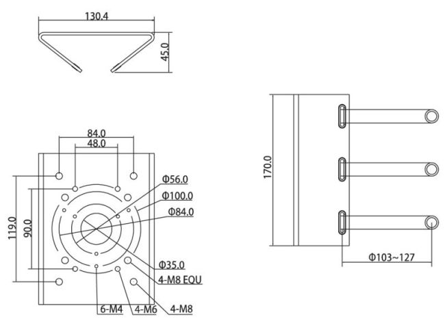 130 x 170 x 80 mm(B x H x T), Mastdurchmesser 80 bis 150 mm