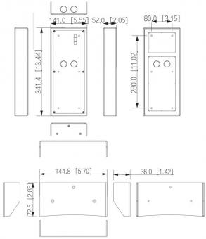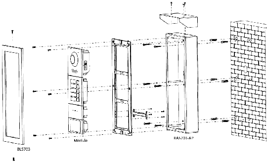 Der Einbaurahmen LUNA RA5703-AP ist für eine Aufputzmontage von drei Modulen der Türsprechanlage LUNA TS5711 vorgesehen. Von der Blende LUNA BL5703 wird für die Installation zusätzlich ein Stück benötigt.