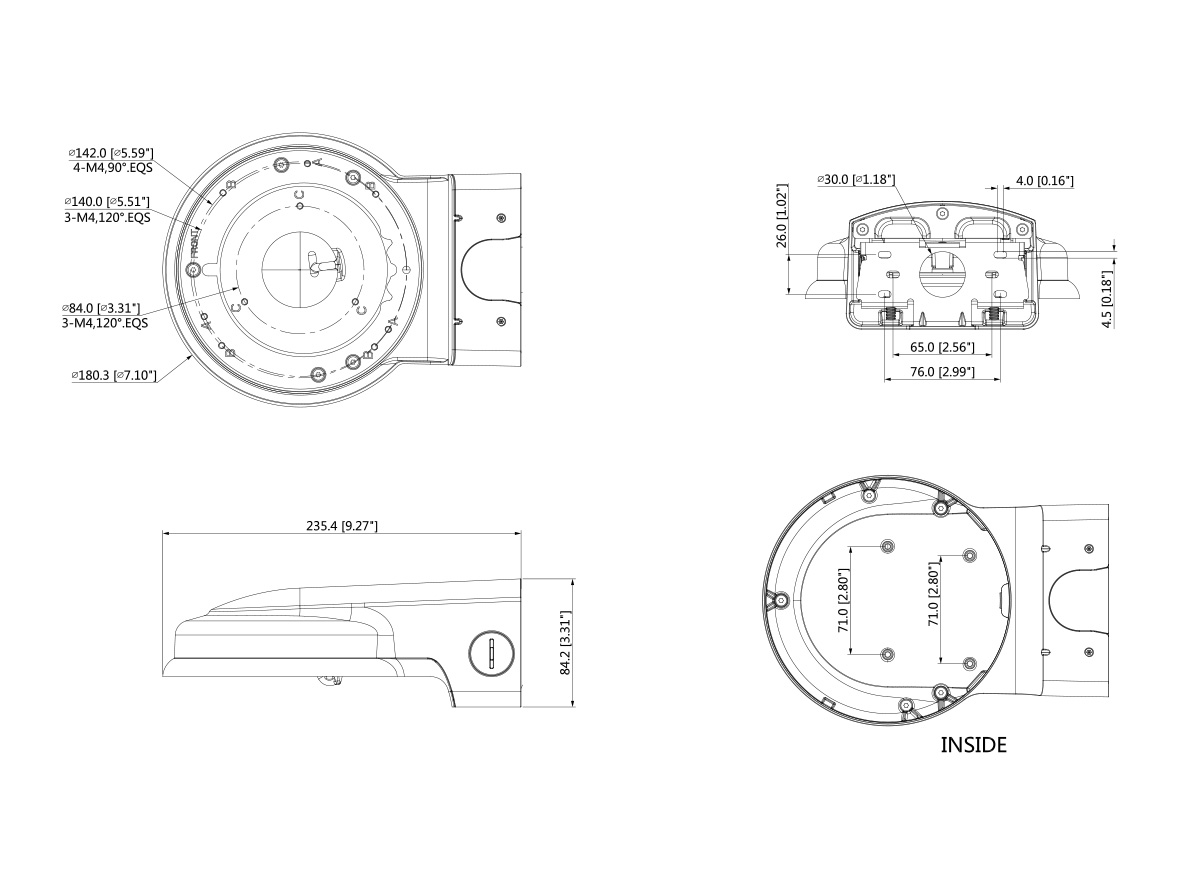 Stabiler Wandhalter in Metallausführung mit innenliegender Kabelführung für diverse LUNA Domekameras.