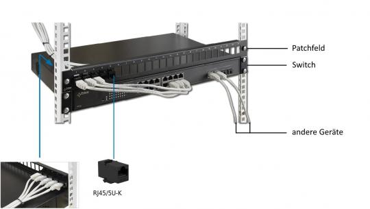 - 24 x Cat 5e oder Cat 6 UTP