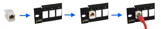Der RAP-RJ45 ist ein 24-Port Leerrahmen zur Montage von Keystone RJ45 Kat. 5e oder Kat. 6 (UTP) Einbaumodulen. Durch die Verwendung wird die Zugbelastung des Kabels gesenkt und Umpatchen wird deutlich übersichtlicher. Der RAP-RJ45 hat keine separate Schirm-Klemme. Zur besseren Übersicht sind die Module durchnummeriert.