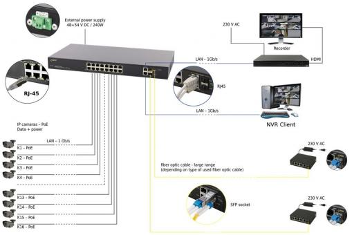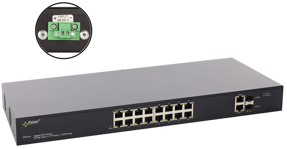 - Highspeed-Switch mit 16x PoE/PoE+