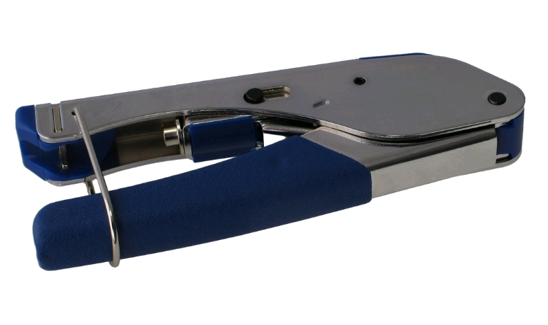 Werkzeug zum Befestigen von BNC-Kompressionssteckern an RG59-Kabel. Mit der Kompressionszange werden die Kompressionsstecker ohne Löten oder Crimpen in drei einfachen Schritten montiert. Das ermöglicht eine schnelle, saubere Installationen durchzuführen, die einen 100%igen Kontakt sicherstellen und höchsten Ansprüchen genügen.