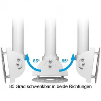 Der TDH2W ist ein Teleskop-Deckenhalter der in der Länge von 1,17 m bis 2,06 m angepasst werden kann. Die mitgelieferte Montageplatte hat einen Durchmesser von 120 mm. Sie eignet sich für Kameras mit einem Bohrlochradius von 30 bis 51 mm und ermöglicht die Montage sowohl von Kameras mit Dreilochsystem (120°) als auch von Kameras mit Vierlochsystem (90°). Angebrachte Kameras können zur Ausrichtung um 360° geschwenkt und in zwei Richtungen um 85° geneigt werden.