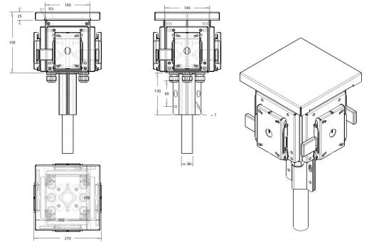5 m hohen Teleskopmast (4 m auf Anfrage möglich) befinden sich