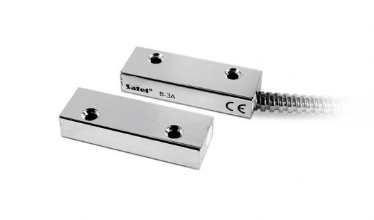 Der B-3A ist ein robuster Aufbau-Magnetkontakt für FH-Türen, Metalltore oder Fenster mit erhöhten mechanischen Anforderungen, wie sie beispielsweise im Industriebereich auftreten. Durch das gekapselte Gehäuse mit Metallschutzschlauch ist der B-3A äußerst unempfindlich gegen mechanische Belastungen und äußere Umwelteinflüsse wie Verschmutzung oder Sabotage. Der große Schaltabstand ermöglicht den zuverlässigen Einsatz auch an ungenau schließenden Türen oder Toren mit hohem Spaltmaß.