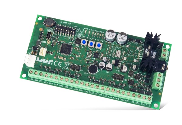 Das INT-VMG Modul ermöglicht die Wiedergabe von Sprachmeldungen im Objekt, die von der Alarmzentrale oder den 16 Eingangskontakten ausgelöst werden. Es dient der Wiedergabe von Informations- oder Warnmeldungen bzw. der Unterstützung der Bedienung des Alarmsystems. Außerdem können Sie über das Modul charakteristische Warntöne wiedergeben.