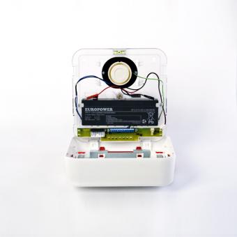 Der Kombisignalgeber SP-6500R für den Außenbereich ist ideal für jede Art von Gefahrenmeldesysteme. Die Installation geht dank weit zu öffnender Frontabdeckung und integrierten Wasserwaagen leicht von der Hand. Das vollhermetische Gehäuse, die leistungsstarke Sirene (bis 120 dBa in 1m ) und die moderne LED-Technik sowie der Betrieb mit optionalem Notstromakku machen den SP-6500R zum echten Universal-Signalgeber. Der SP-6005R ist doppelt sabotageüberwacht (gegen Öffnen und Abriss) und durch die zusätzliche Innenabdeckung aus Metall äußerst robust. Die Lautstärke ist einstellbar, ebenso kann zwischen vier verschiedenen Melodien gewählt werden. Status-LEDs sowie übersichtliche Klemmleisten und Steckbrücken erleichtern dem Installateur die Arbeit.