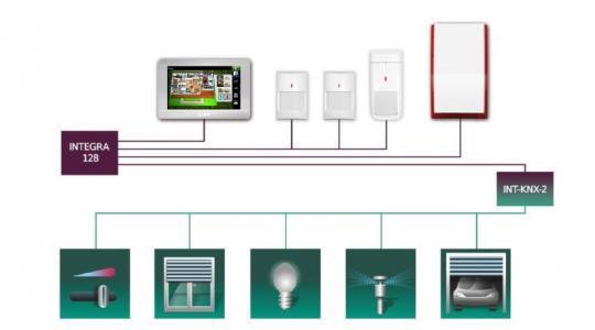 Das INT-KNX-2 Modul ermöglicht die Integration des INTEGRA Alarmsystems mit dem KNX-System. Auf diese Weise kann die Alarmzentrale die an den KNX-Bus angeschlossenen Schaltaktoren steuern, und die Busteilnehmer können das Alarmsystem steuern. So verbinden sich beide Standards um die bestmögliche Funktionalität aus beiden Welten zu erreichen.
