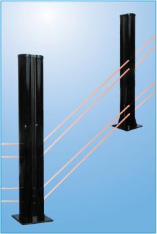 In die Doppel-Profilsäulen HE-4598 können alle OPTEX Lichtschranken mittels Montageplatten montiert werden. Dabei ist die Montagehöhe frei wählbar. Von außen ist nicht sichtbar, wieviele Lichtschranken eingebaut sind und auf welcher Höhe sich die IR-Strahlen befinden.