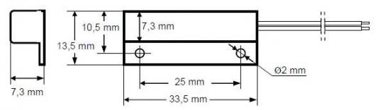 Kleiner Aufbau-Magnetkontakt mit vergossenem Reedschalter und Magnet. Die Montage erfolgt über Anschrauben oder Ankleben der seitlichen Laschen. Der K-1 ist auch in braun erhältlich. Der Magnetkontakt kann überall dort angewendet werden, wo Türen, Fenster oder andere bewegliche Elemente überwacht werden müssen, z.B. zum Schutz oder als Zutrittskontrolle zu bestimmten Räumen, Anlagen oder in Automatiksystemen etc.