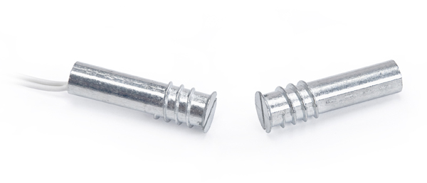 Kleiner Einbau-Magnetkontakt mit vergossenem Reedschalter und Magnet. Zwei Widerstände mit je 1,1 kOhm sind mit vergossen, sodass mit minimalem Aufwand die Montage vorgenommen werden kann. Das Aluminiumgehäuse mit Schraubgewinde ermöglicht eine einfache Installation ohne Einkleben oder Schlagen. Der Magnetkontakt kann überall dort angewendet werden, wo Türen, Fenster oder andere bewegliche Elemente überwacht werden müssen, z.B. zum Schutz oder als Zutrittskontrolle zu bestimmten Räumen, Anlagen oder in Automatiksystemen etc.