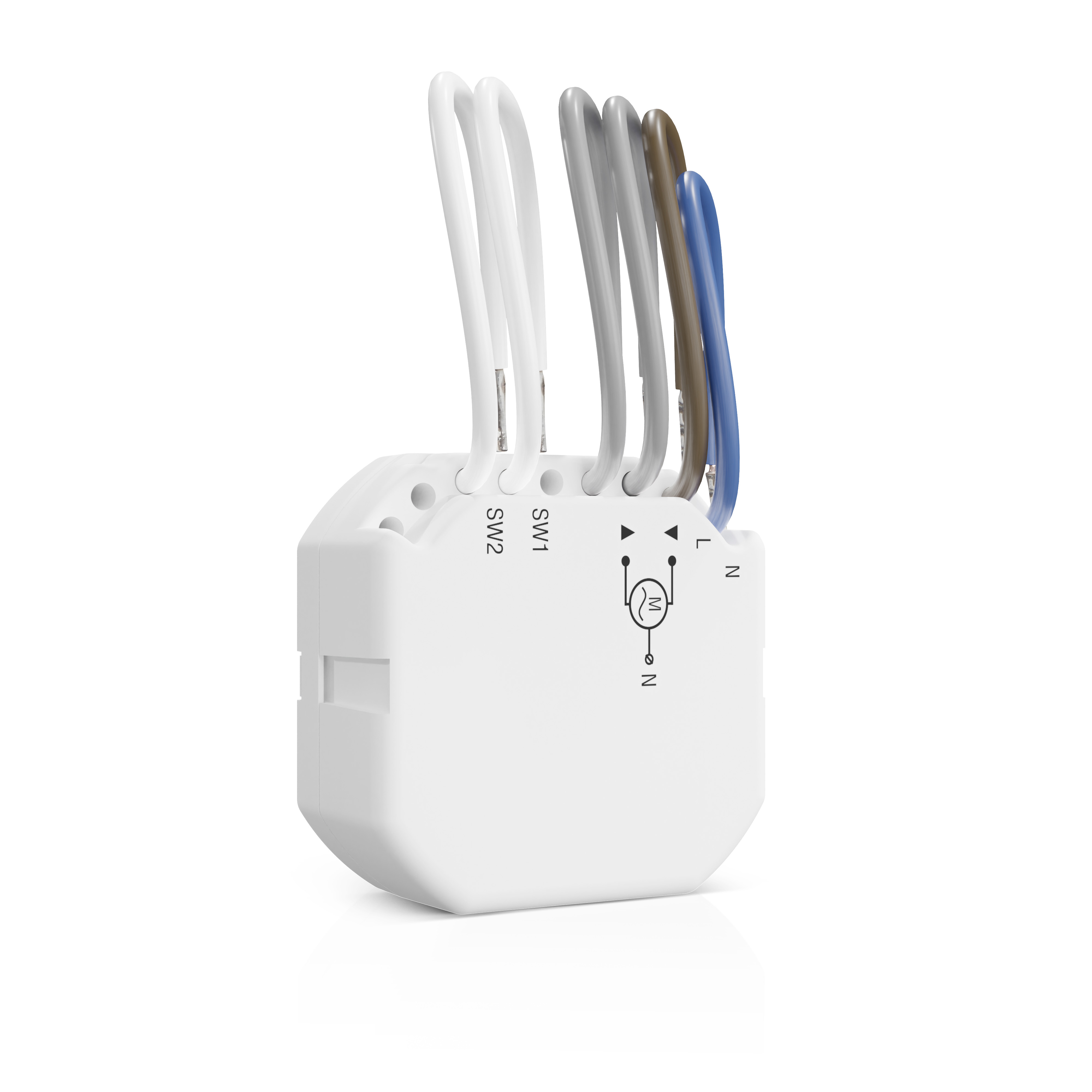Mittels zweier Steuerungseingänge besteht die Möglichkeit, einen Doppel-Wipptaster oder Jalousie-Schalter anzuschließen. Die lokale Steuerung von Rollladen bzw. Jalousie oder die Steuerung von beliebigen Geräten im System ist ebenfalls möglich.