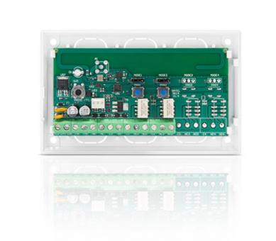 Zwei Ausgänge vom Typ OC dienen der Signalisierung bei schwacher Batterie des Handsenders und bei Scharfschaltung / Unscharfschaltung / Alarmlöschung im Alarmsystem