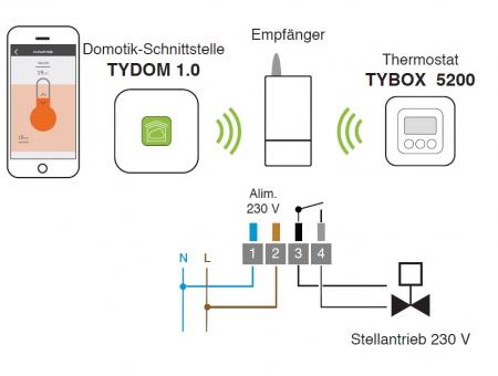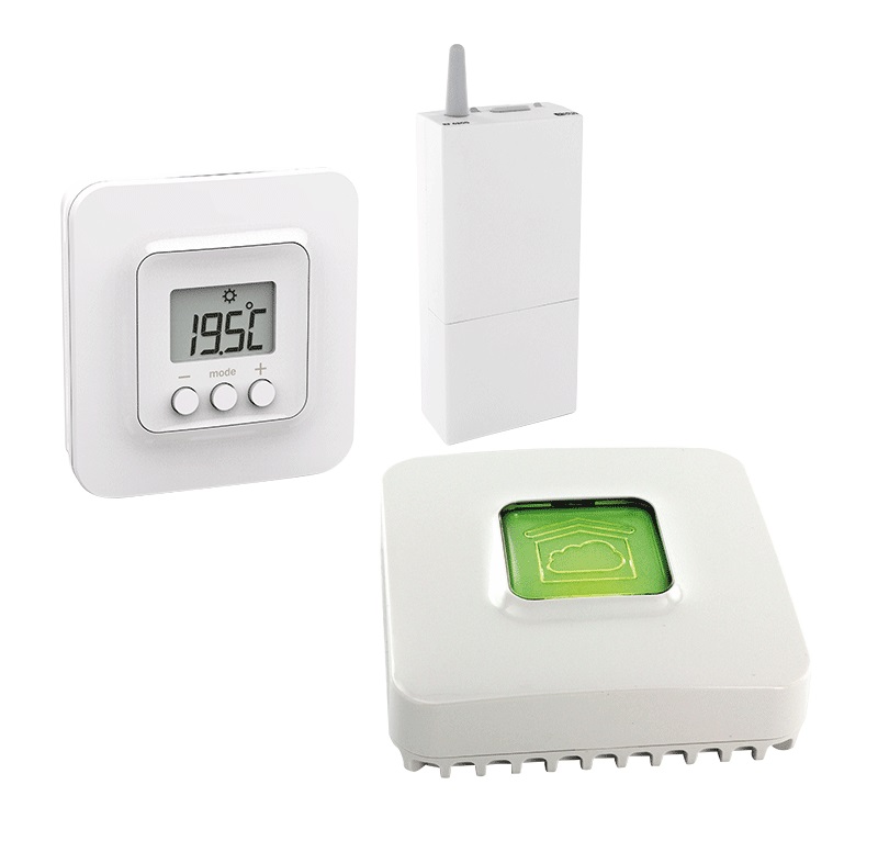 Das Pack TYBOX 5100 Connected besteht aus einem Raumtemperaturregler TYBOX 5100, einem Heizkesselempfänger RF 6420 und einer IP-Domotik-Schnittstelle TYDOM 1.0. Sie erhalten hiermit die Möglichkeit die Temperatur sowohl über die Bedieneinheit als auch per App zu regeln und die aktuelle Temperatur anzeigen zu lassen. Das TYBOX 5100 Connected gehört der Energieeffizienzklasse 4 (EuP) an.