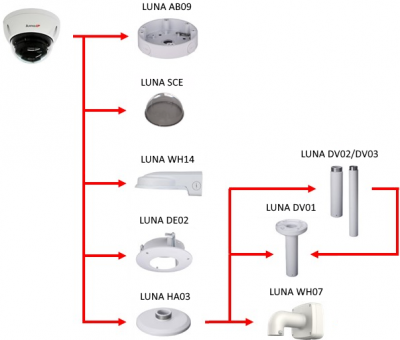 Zugriff über Netzwerk/Internet: lunaCMS (Windows-PC), LunaViewer (App für Android und iPhone) - alle Clientprogramme sind kostenfrei Montageoptionen: