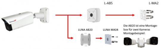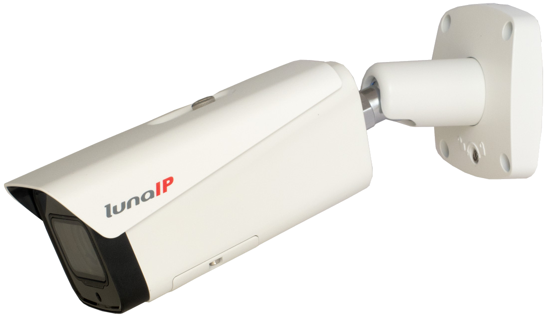 Die LUNA KE5803 v4 ist eine 8 Megapixel IP-Bulletkamera die neben IVS-Funktionen auch über neueste KI-Technologie verfügt. Das Gehäuse mit innenliegender Kabelführung ist wetter- und vandalismusgeschützt (IP67/IK10). Der 1/1,8" CMOS Sensor liefert eine maximale Auflösung von 3840x2160 px bei 25bps. Die Kamera ist ausgestattet mit einem 2,7-12 mm Motorzoom-Objektiv, IR-LEDS (Reichweite bis 60 m) und einem mechanischen IR Cut Filter (ICR). Die Bilder können über drei unabhängige Streams im H.264(+)/H.265(+)/MJPEG Format abgerufen werden. Die Spannungsversorgung kann wahlweise über 12 V DC oder PoE erfolgen.