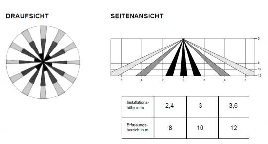 - 1,6° bei 0,6m/s (bei einer Montagehöhe von 2,4 m)