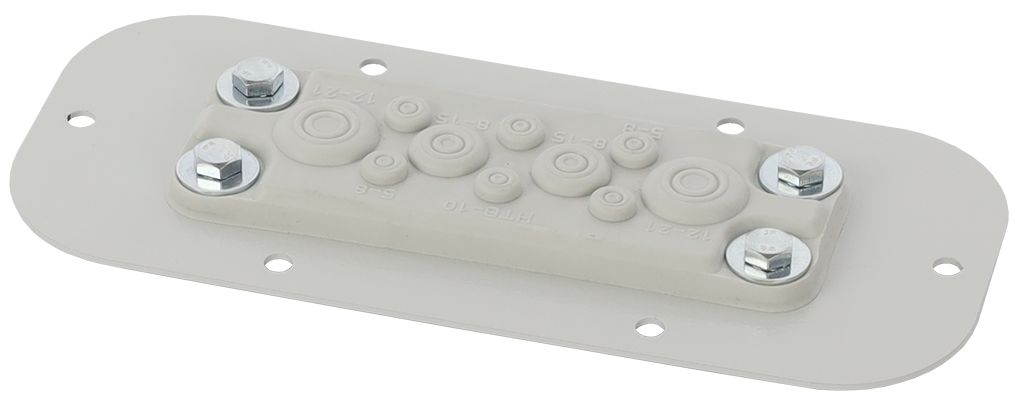 Die Membrandurchführung AWOH-PM10A ermöglicht die Kabeldurchführung im hermetischen Gehäuse der AWOH252515. Die Membran besteht aus flexiblem Material, das die Dichtheit des Gehäuses gewährleistet und die Kabel vor Beschädigungen schützt. Die Membrandurchführung wird mit sechs Befestigungsschrauben und einer Dichtung, die im Lieferumfang des AWOH-Gehäuses enthalten ist, am Gehäuse befestigt.