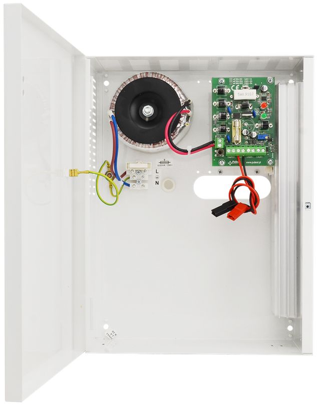 Die Konstruktion des linearen Netzteils basiert auf einem Ringkerntransformator, mit hoher Energie-Leistung, in einem Metallgehäuse (Farbe RAL 9003) und mit Platz für einen Akku 17Ah/12V. Das AWZ300 wird fertig vorinstalliert in einem sabotagegeschützten Metallgehäuse geliefert.