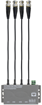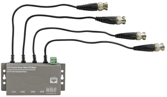 Zusätzlich zum Bildsignal kann die Versorgungsspannung für eine Kamera mit übertragen werden. Dazu werden sechs freie Adern des Patchkabels verwendet. Steuersignale (PTZ, OSD usw.) werden nicht mit übertragen. Der Sender ist mit einem separatem Netzteil mit Spannung zu versorgen. Passende Netzteile sind optional erhältlich.