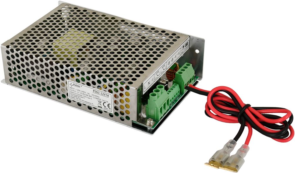 Das Netzteil PSG2-12V7A ist ein universell einsetzbares, GRADE-2 konformes und gepuffertes 7A Impulsnetzteil mit einem Akkuladestrom von 1A/2A. Aufgrund der kompakten Abmessungen passt es hervorragend in kleine Gehäuse. Das Netzteil verfügt über Kurzschluss-, Überspannungs- sowie Überlastschutz und Service-Ausgänge bei: AC-Netzstörung und Akkumulatorausfall. Es wird ein automatischer Akku-Test alle 5 Minuten durchgeführt.