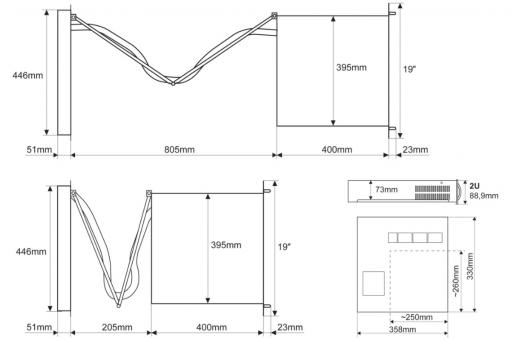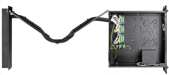 Das ARAD-S2 ist ein universelles 19"-Gehäuse für Sicherheitssysteme beispielsweise von SATEL, DSC, Risco, Paradox und vielen mehr. Alle nötigen Komponenten wie Trafo, Akku, Systemplatinen und viele weitere können in vorgefertigte Aufnahmen installiert werden. Der Schubladenauszug mit geschützter Kabelführung im Storchenschnabel erleichtern die Wartung und Installation auf engstem Raum. Die Anschlüsse sind auf das Backpanel herausgeführt, sodass bequem am Backpanel aufgelegt werden kann anstatt umständlich im Gehäuse zu verdrahten. Sämtliches Montagezubehör wie Flexschlauch, Schrauben, Kabelbinder, Storchenschnabel usw. sind im Lieferumfang enthalten. Das ARAD-S2 ist sabotageüberwacht gegen Öffnen des Deckels, Öffnen der Patch-Anschlüsse sowie gegen das Herausziehen der Schublade.