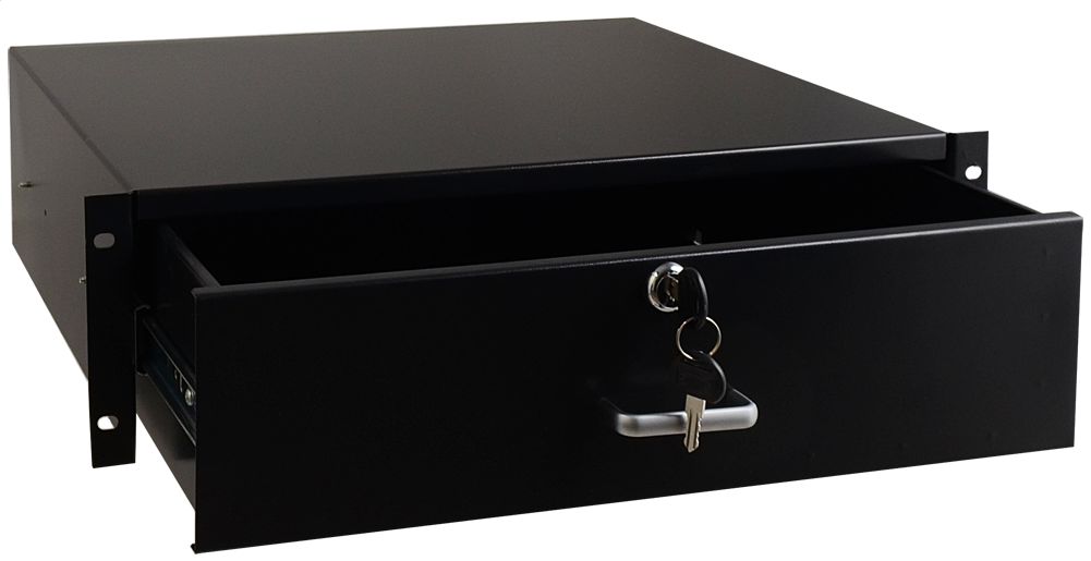 Die RASR3 ist eine Schublade zum Einbau in 19"-RACKs mit einer Höhe über 3 Einheiten. Sie ist geeignet zur Aufbewahrung von Dokumenten oder Montage von Zusatzelementen. Sämtliches Befestigungsmaterial sowie 2 Schlüssel sind im Set inbegriffen.