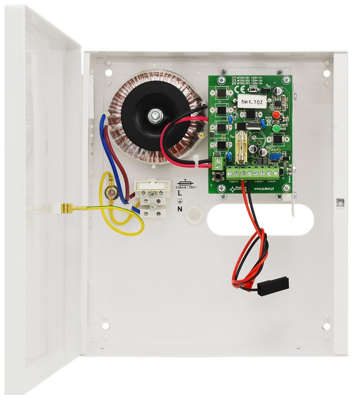 Die Konstruktion des linearen Netzteils basiert auf einem Ringkerntransformator, mit hoher Energie-Leistung, in einem Metallgehäuse (Farbe RAL 9003) und mit Platz für einen Akku 7Ah/12V. Das AWZ101 wird fertig vorinstalliert in einem sabotagegeschützten Metallgehäuse geliefert.