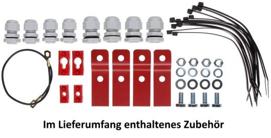 - Störungsausgänge für Akkuüberwachung, Netzspannung, Systemstörung