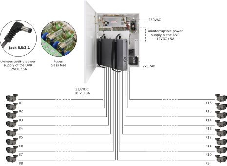 - Anschlüsse für 16 Kameras (13,8V/1A)