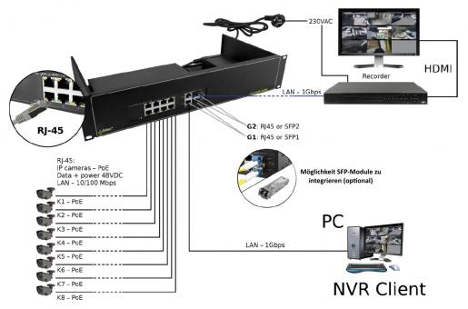 GBIC-SFP-Modulen auch mit LWL-Installation angebunden werden.