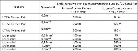 34VDC mit bis zu 1000 mA (1A-Sicherungen im Lieferumfang) pro Kanal. Durch die hohe Ausgangsspannung werden auch lange Leitungswege kompensiert und man erspart sich eine dezentrale Spannungsversorgung der einzelnen Kameras, sondern kann bequem mit Systemkabel arbeiten. Ausgangsseitig wird lediglich ein DC/DC-Spannungswandler (z.B.