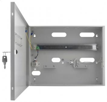 Das kompakte, robuste Stahlblechgehäuse AWO513 ist auf BOSCH-Zutrittskontrollsysteme abgestimmt. Es ist öffnungsüberwacht und verfügt über eine DIN-Schiene zur Montage der Module. Das Gehäuse vefügt bereits über die passenden Bohrungen um die unterschiedlichen Module möglichst einfach installieren zu können. Zusätzlich zu den Standardkomponenten bietet das Gehäuse Platz für 2 Stück 7Ah/12V-Akkus. Der Kabelsatz zum Anschluss ist bereits im Lieferumfang enthalten.