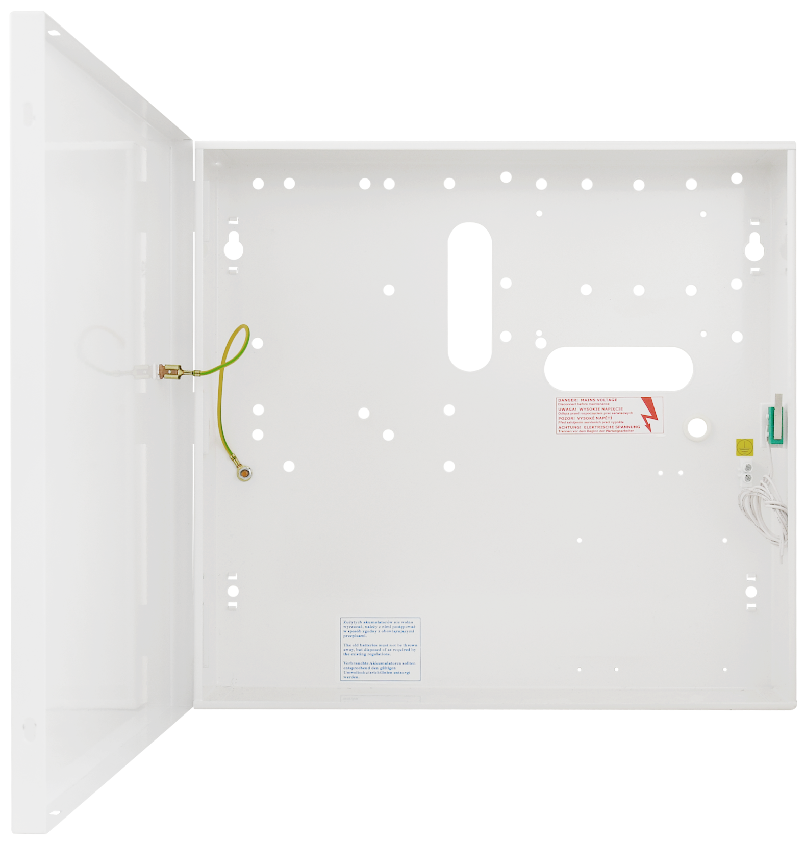 Das robuste Stahlblechgehäuse AWO249 ist auf den universellen Einsatz ausgelegt. Es ist doppelt sabotageüberwacht und wird typischerweise mit einem Transformator AWT150 ausgetattet. In dem Gehäuse ist Platz für unterschiedlichste Platinen und einen 7 Ah Akkumulator. Das Gehäuse vefügt bereits über die passenden Bohrungen um diverse Module möglichst einfach installieren zu können.