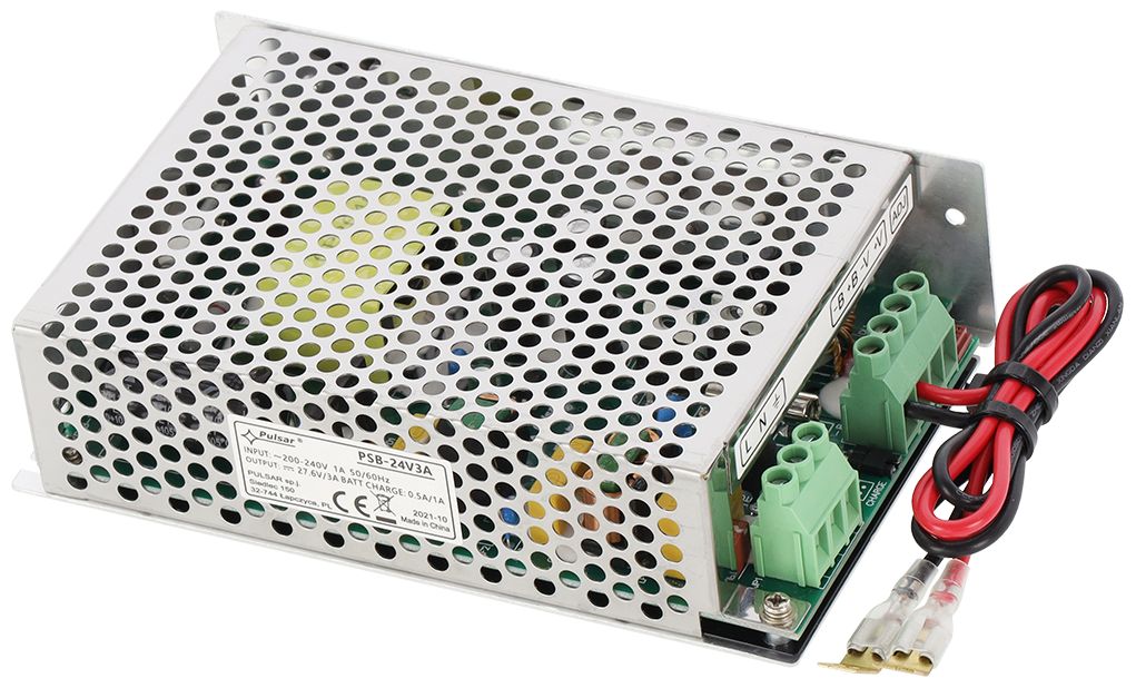 Das Netzteil PSB-24V3A ist ein universell einsetzbares und gepuffertes 3A Impulsnetzteil mit einem Akkuladestrom von 0,5A/1A. Aufgrund der kompakten Abmessungen passt es hervorragend in kleinste Gehäuse. Das Netzteil verfügt über Kurzschluss-, Überspannungs- sowie Überlastschutz.