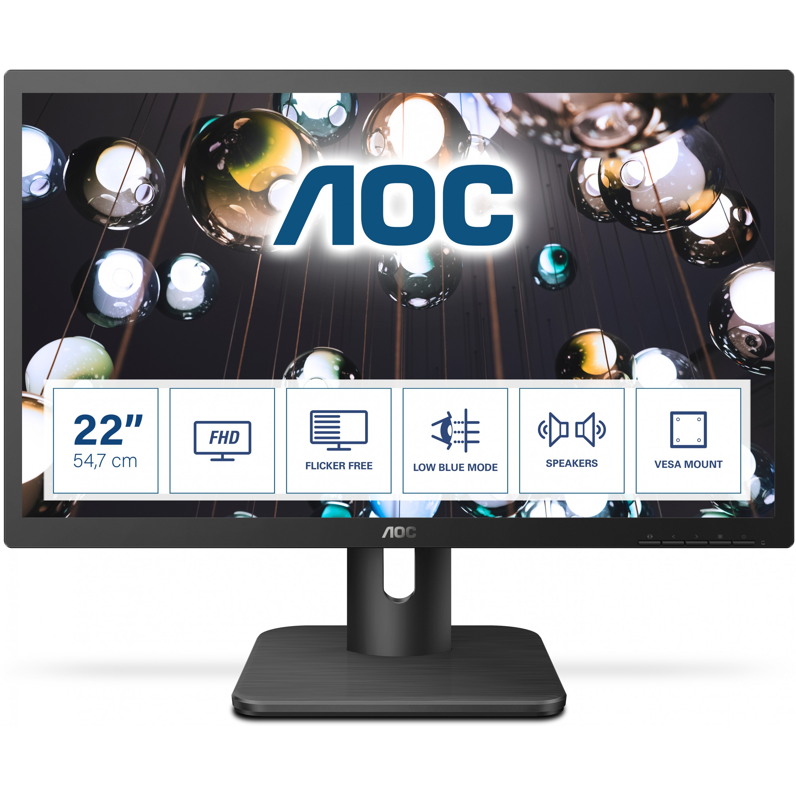 Der FullHD Monitor verfügt über ein 21,5"-TN-Panel, Full HD-Auflösung (1080p) mit HDMI- sowie DVI- und VGA-Eingang (Kabel inbegriffen) und integrierten Lautsprechern. Der Standfuß bietet Neigefunktion und Kabelmanagement. Zertifiziert umweltfreundlich. Je ein VGA- und HDMI-Kabel sind im Lieferumfang enthalten.