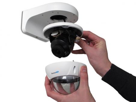 Die LUNA DA2603 ist eine vandalismusgeschützte (IK10) Domekamera mit IR-Strahler (30m) und für den Innen- und Außeneinsatz geeignet (IP67). Das Signal ist umschaltbar über OSD-Menü oder einen separaten remote Controler, somit kann das Signal über den BNC-Ausgang auch als CVBS, AHD oder TVI ausgegeben werden. Der 1/2,8" CMOS Sensor liefert eine max. Auflösung von 2 Megapixel (1920x1080px) mit bis zu 25 Bildern pro Sekunde. Die Kamera ist mit einem 2,7~13,5mm Motorzoom Objektiv ausgestattet und verfügt über einen mechanischen IR Cut Filter (ICR). Einstellungen an der Kamera können komfortabel über das Koaxialkabel im OSD (OnScreenDisplay) der Kamera vorgenommen werden. Die Spannungsversorgung erfolgt über 12VDC oder 24VAC