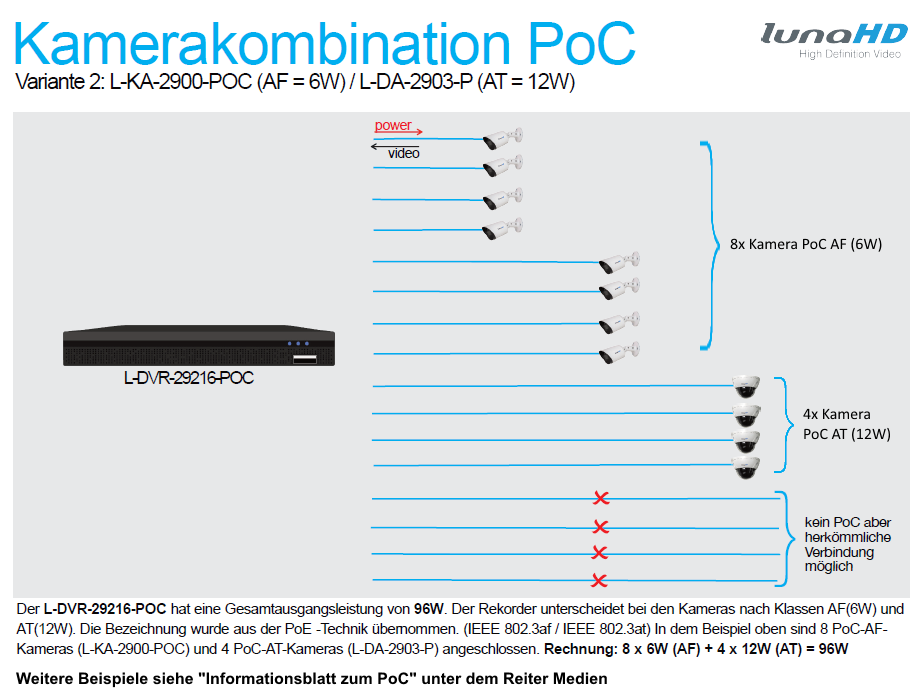 - Bei Kameras ohne LUNA POC-Funktion ist der Splitter SP2801 zu verwenden.