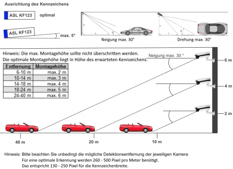 - 8 bis 30 m für Kennzeichenerkennung