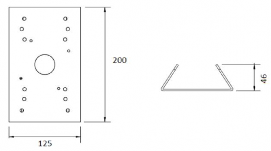 200 x 125 x 46 mm (B x H x T), Mastdurchmesser 130-160 mm